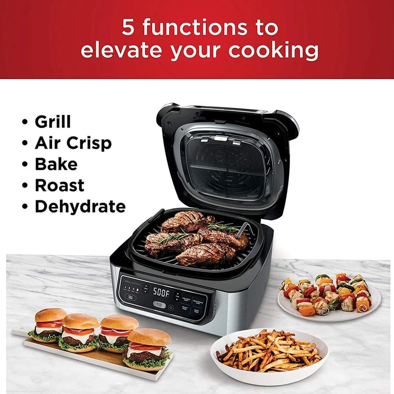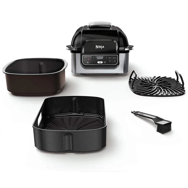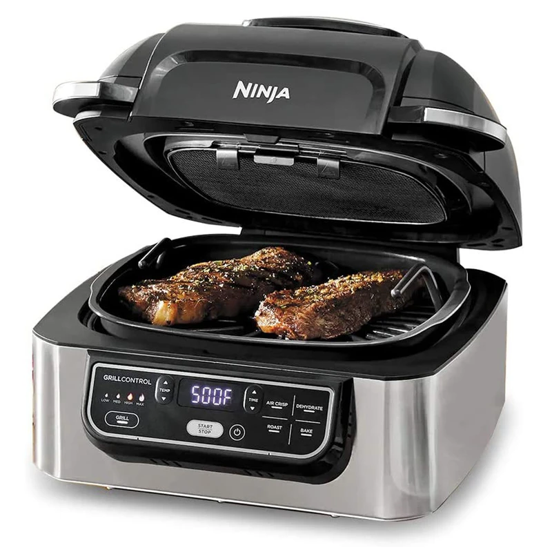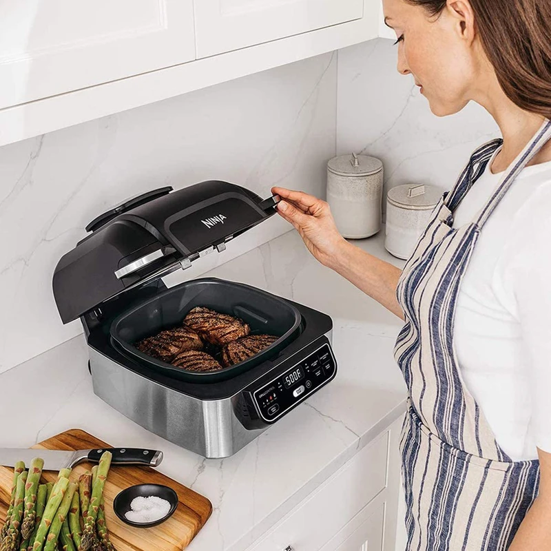 دارای برنامه های ( سرخ کن ، گریل ، میوه خشک کن ، کباب و پخت کیک و ...) برنامه گریل قابل تنظیم ۴ حالت پخت از کم ، متوسط ، زیاد و حداکثر توان قابلیت تنظیم دما و زمان به صورت دستی و دلخواه تمام ظروف پخت و پز نچسب با روکش سرامیک و عاری از PTFE و PFOA ابعاد صفحه مخصوص گریل ۲۵.۴ در ۲۵.۴ سانتی متر ظرفیت ظرف مخصوص پخت ۶ لیتر ظرفیت ظرف مخصوص سرخ کردن ۴ لیتر گردش هوا با دمای حداکثر ۲۶۰ درجه سانتی گراد در محفظه دارای تکنولوژی گریل smoke free بدون دود
