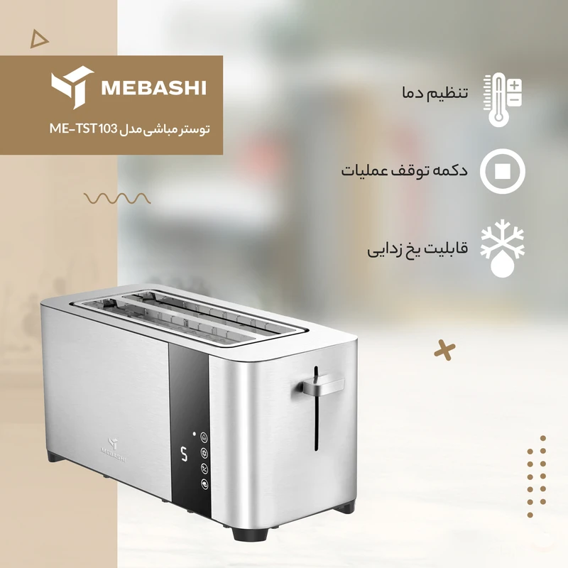 با توستر مباشی مدل ME-TST 103، هر صبحانهای را به تجربهای لذتبخش تبدیل کنید! با ظاهری شیک و کارایی بینظیر، نانهای برشته و طلایی را در کمترین زمان آماده کنید. قابلیت تنظیم درجه حرارت و عملکرد یکنواخت، این توستر را به انتخابی ایدهآل برای آشپزخانه شما تبدیل کرده است. اکنون خرید کنید و روزتان را خوش شروع کنید!