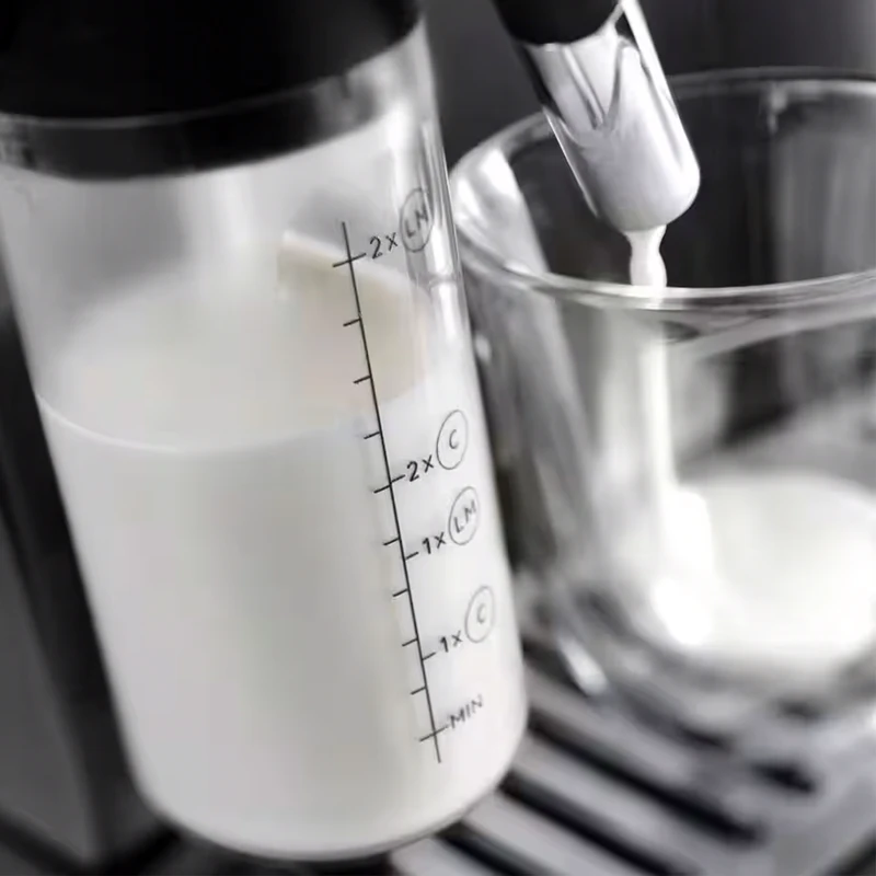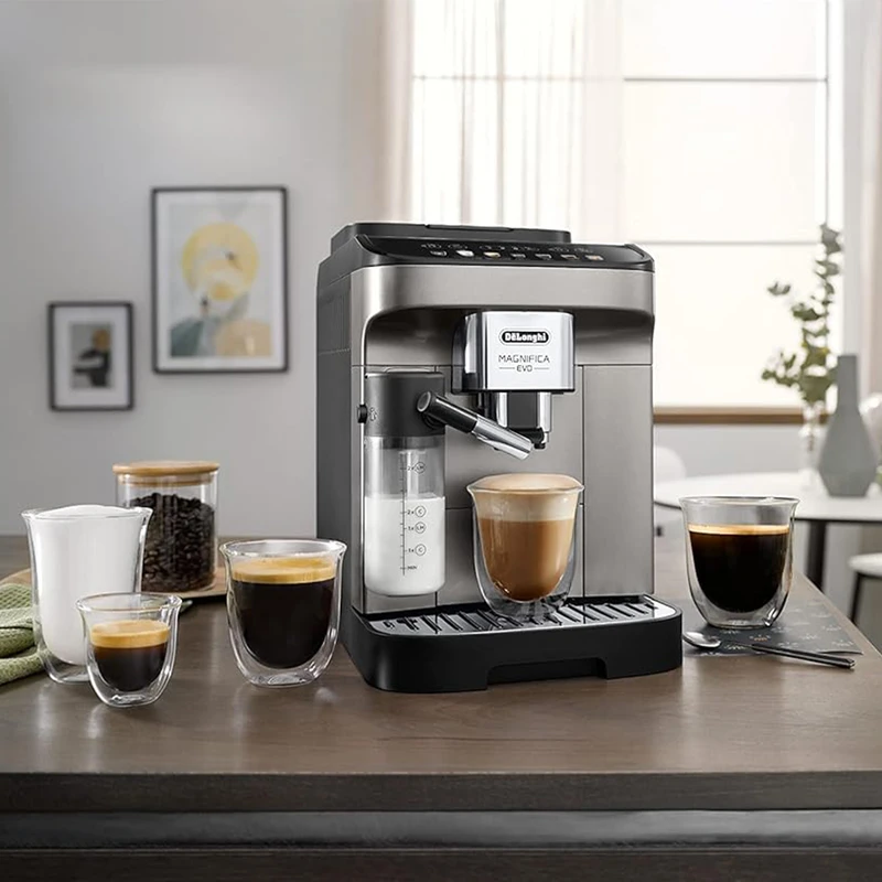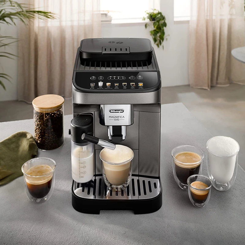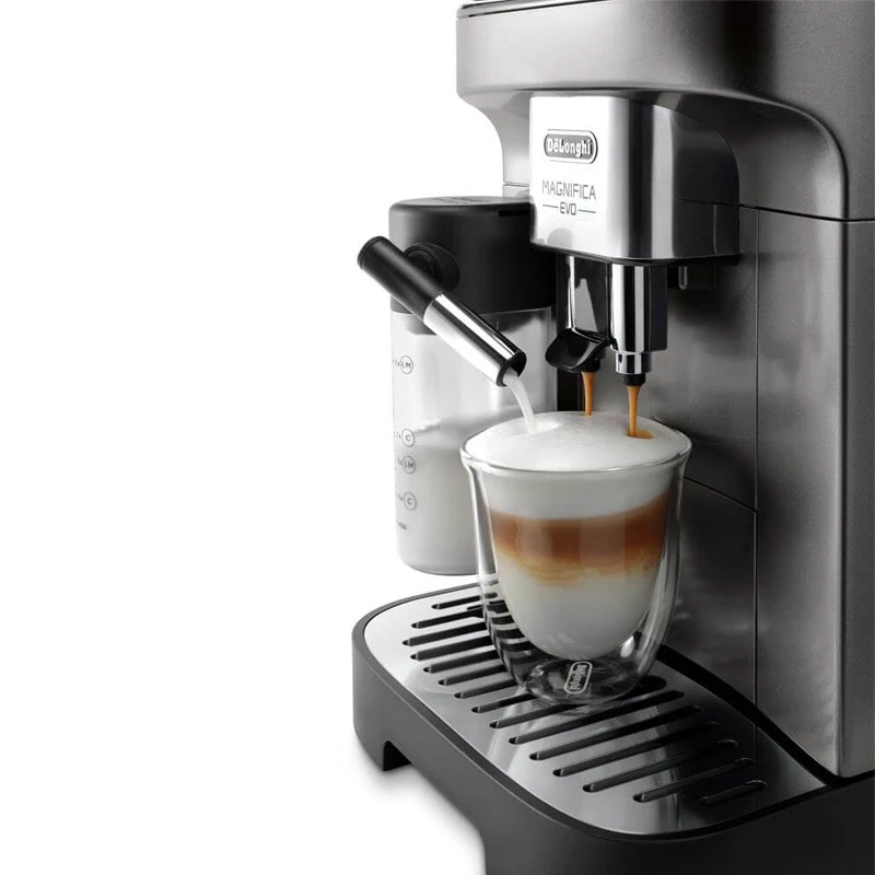 با عملکرد doppio+ این دستگاه می تواند یک فنجان (یا دو) قهوه بسیار قوی تهیه کند و به دنبال آن فشار ۱۵ بار باعث می شود که یک فنجان اسپرسوی تازه طعم تلخی نداشته باشد؛ این عملکرد قطعا تمام عاشقان قهوه قوی را خوشحال میکند. یکی دیگر از ویژگی های عالی دستگاه های اسپرسوساز دلونگی نوع خودکار دارا بودن شخصی سازی منو می باشد. یعنی می توانید منو را به دلخواه و سلیقه خود برنامه ریزی کنید. بدین صورت که برای تهیه هر نوع نوشیدنی به دلخواه خود مواد را انتخاب کنید. بر فرض مثال اگر به شیر بیشتری در نوشیدنی احتیاج دارید آن را به میزان بیشتری انتخاب کنید. نوشینی های قابل تهیه: آب جوش . Doppio + (دو شات اسپرسو) . Coffee . اسپرسو . کاپوچینو . فوم گرم . my latte ( لاته سفارشی)